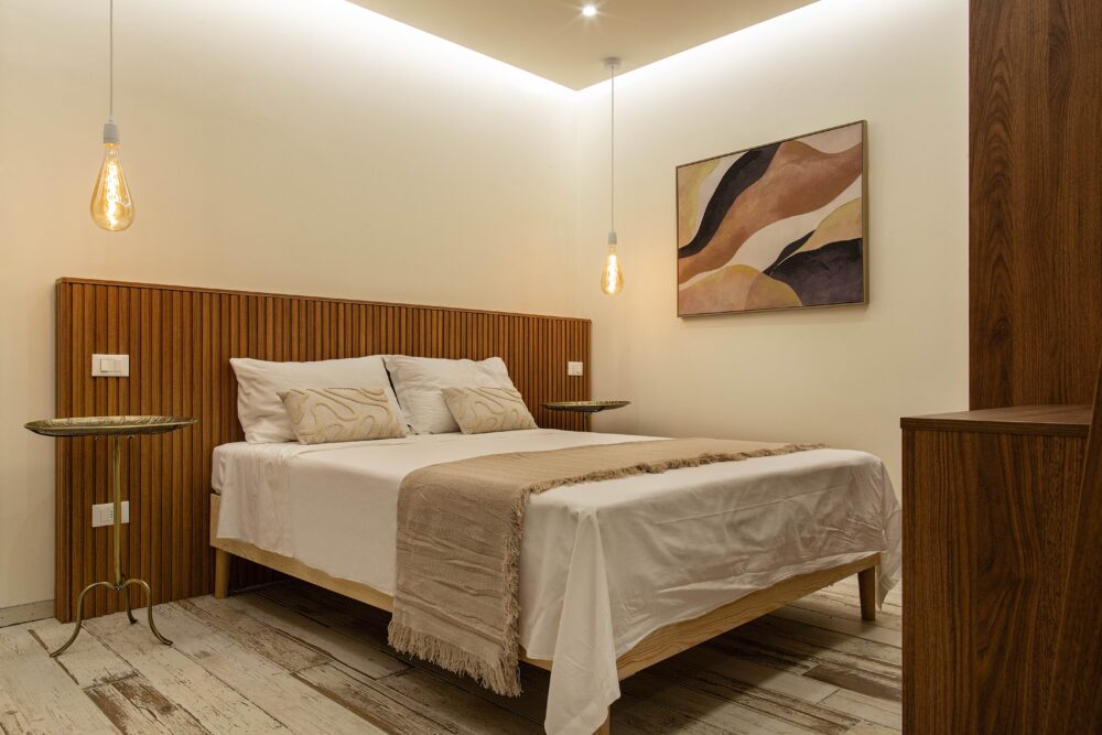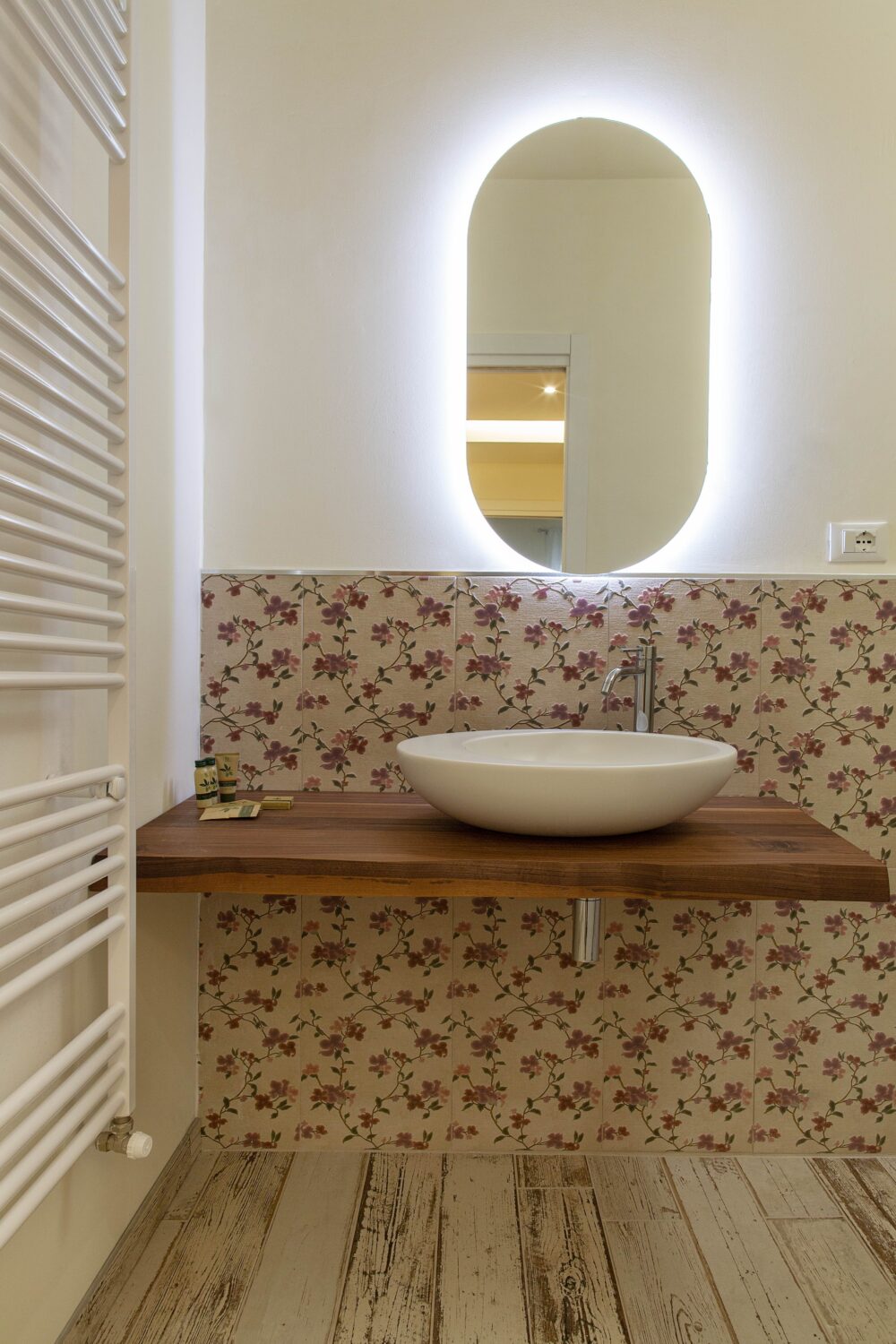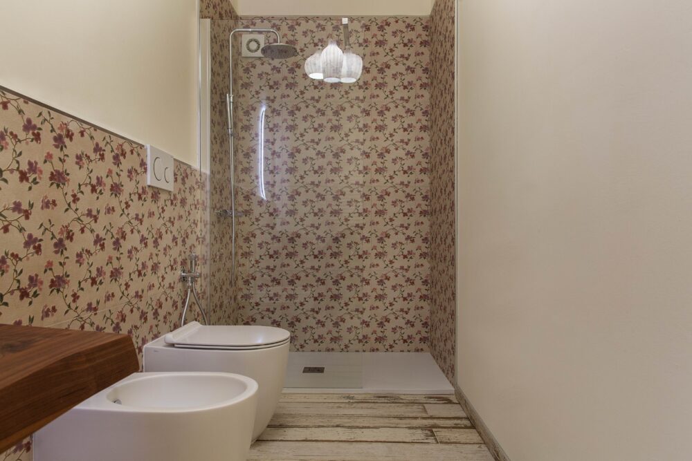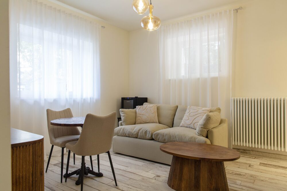 L’appartamento dispone di una camera matrimoniale con zona soggiorno e di un bagno privato con doccia e set di cortesia.