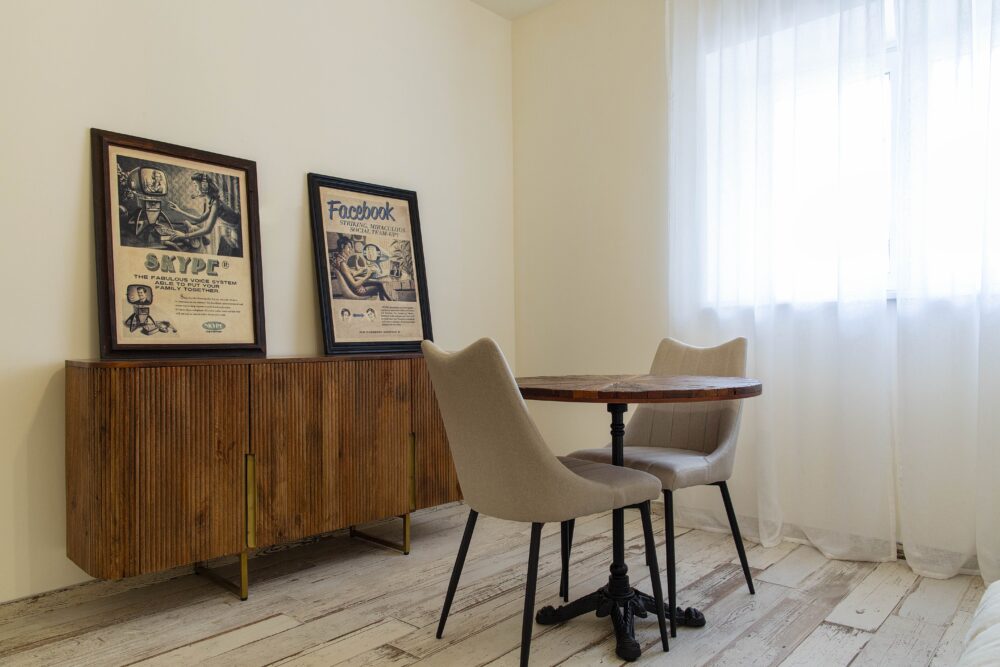 Gli ambienti, ampi circa 40 mq, sono dotati di frigorifero, armadio, riscaldamento e TV a schermo piatto, offrendo tutto il necessario per un soggiorno piacevole e confortevole.